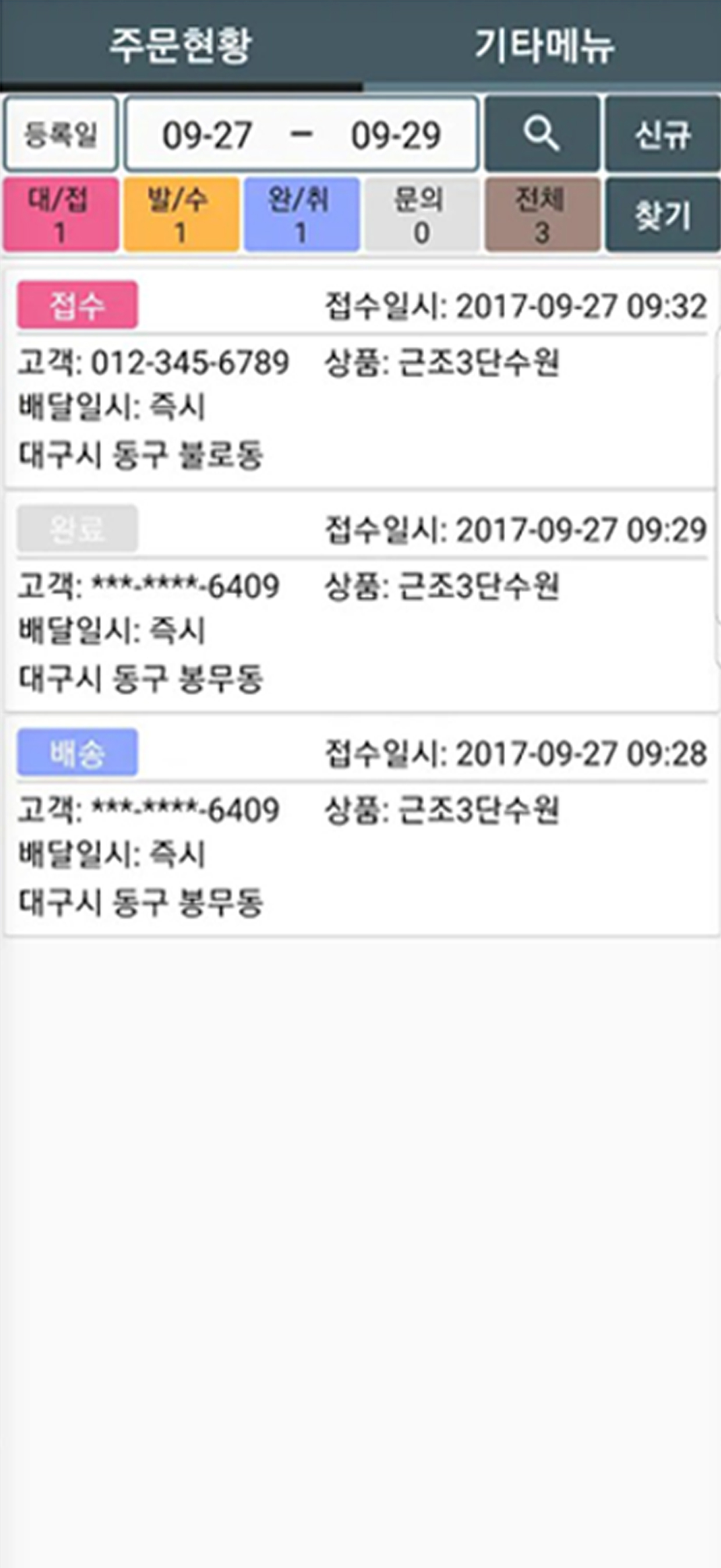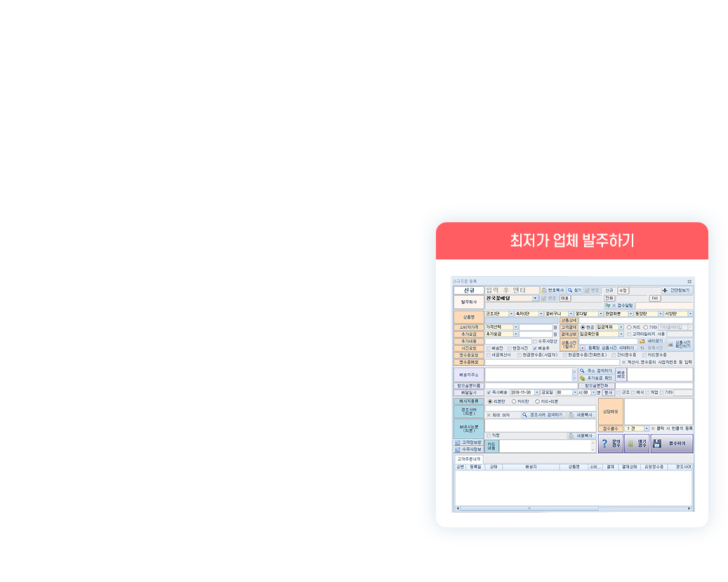 전화상담 - 접수 - 인트라넷 발주 - 배송 사진 전송 - 계산서 발행까지